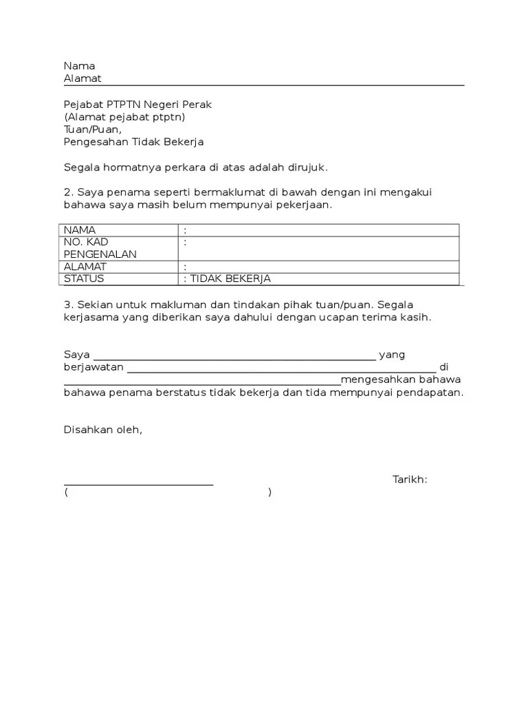 Contoh Surat Pengesahan Pendapatan Tidak Bekerja Pdf : Contoh Surat Pengesahan Pendapatan Pdf Contoh Surat. Contoh surat pengesahan pendapatan ini boleh dibuat dalam bentuk format ataupun boleh juga menggunakan surat rasmi. Didik darmadi, st jabatan : A short summary of this paper. Pihak kedua akan bekerja sebagai tenaga teknis kefarmasian di rs/klinik/apotek. Dalam surat akaun pengesahan ini akan mengandungi beberapa butiran penting termasuk berapa gaji dan pendapatan bulanan, jawatan yang diberikan kepada anda dan lain … Saya tidak memiliki kewarganegaraan asing (peruntukan ini tidak disyaratkan sekiranya melibatkan perlantikan bukan warganegara;